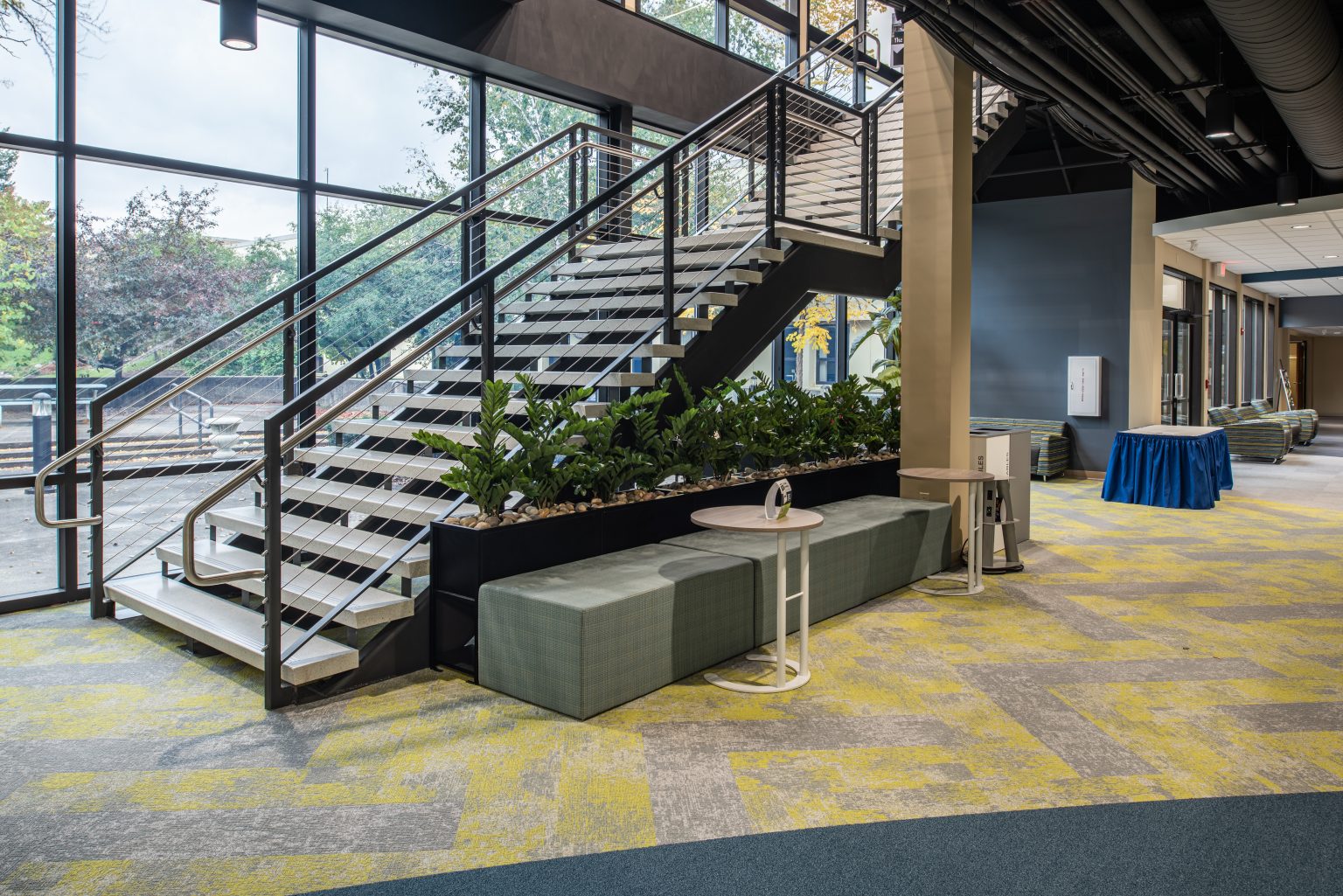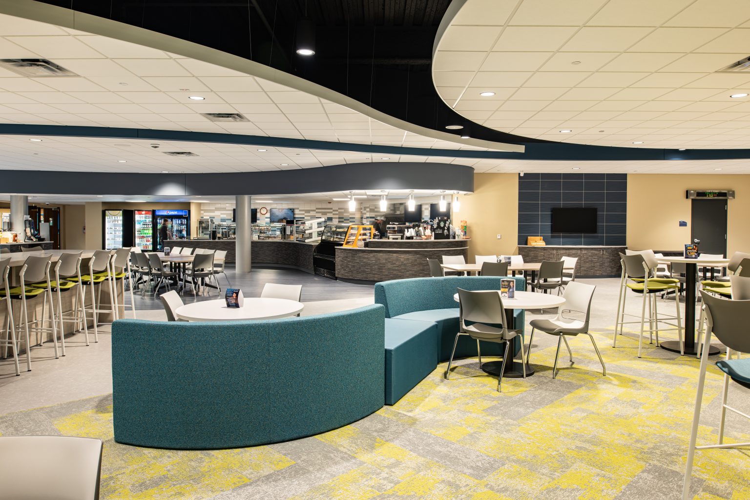 Blackhawk Technical College’s Central Campus in Janesville, WI underwent interior renovations to the cafeteria, commons and old library spaces to elevate the on-campus experience. The upper level was transformed into a brand-new conference center and the lower level is home to the new student union and cafeteria. The student union features a unity lounge which creates a space for students to engage and learn about the colleges diverse community. The new spaces provide a new venue for their graduation and pinning ceremonies.